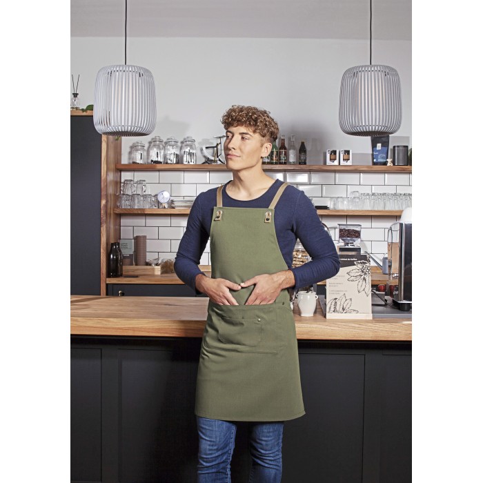 Bib Apron Urban-Nature With Cross Straps And Big Pocket