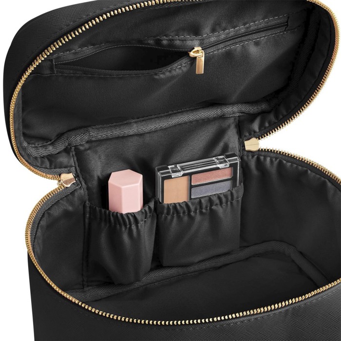 Leather-Look PU | Saffiano fine grain | Multi-purpose use | Zippered main compartment | Zippered internal pocket | Internal pouch pocket | Soft-touch lining | High shine gold metal zip | Self fabric carry handle | TearAway label for ease of rebranding | Delivery without decoration/content | Capacity: 4 litres