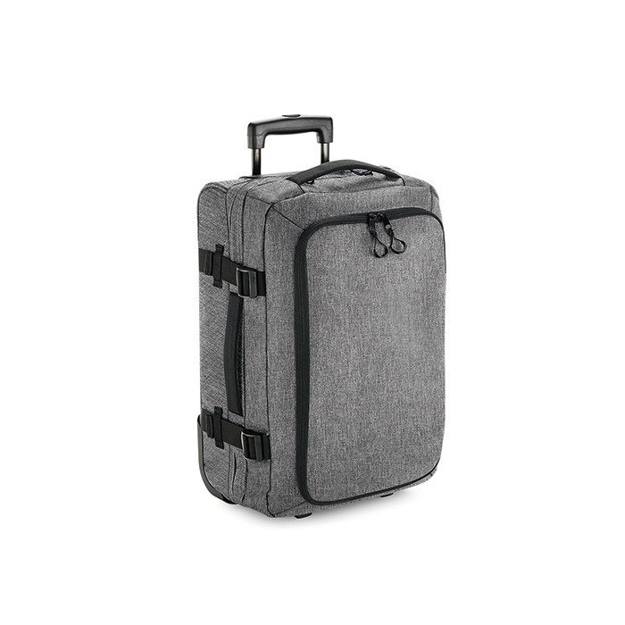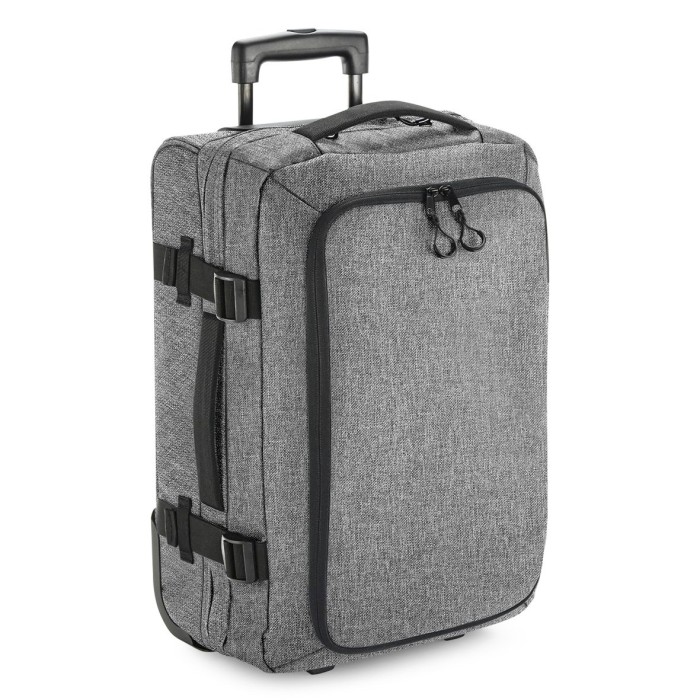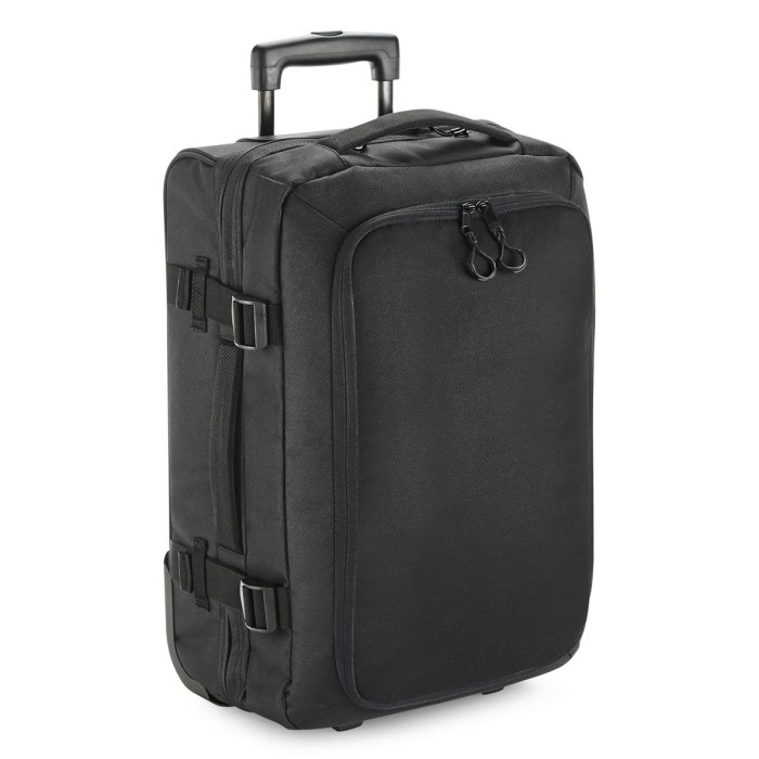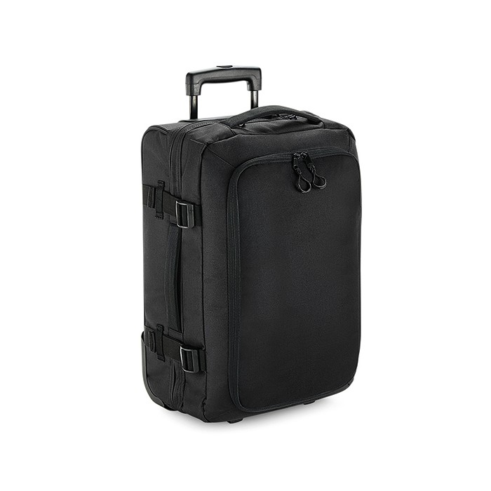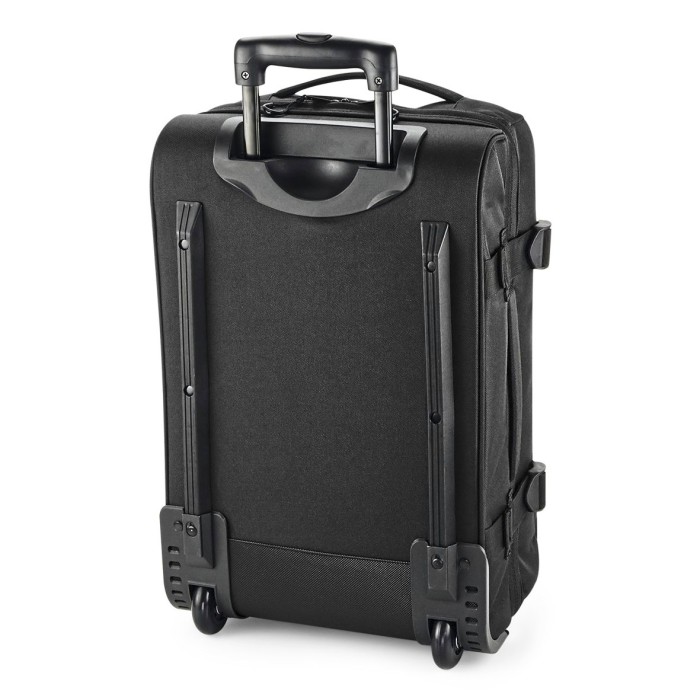 600D Polyester | TearAway label | Convenient dual compartment design for easy packing | Lockable main compartment zip | Large zippered front compartment with internal mesh divider | Zippered internal pocket | Dual compression straps | Padded top and side handles | High stability retractable twin handle | Aircraft cabin compatible - suitable for most airlines | Durable integrated skate wheels | Padded laptop compartment, compatible up to 15.6“ | Can be further customised with BG485 Escape Handle Wrap | Delivery without content / decoration | Capacity: 40 litres