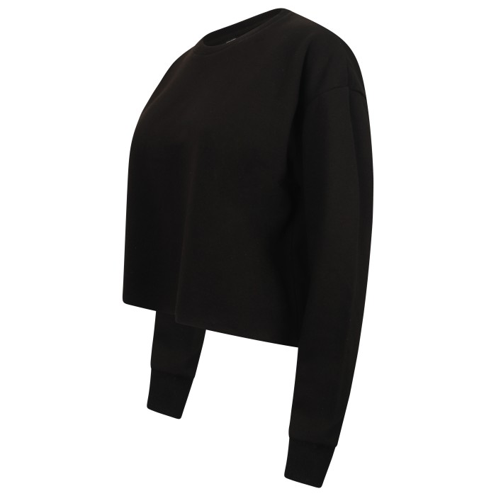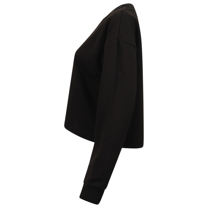 Brushed Back Fleece | Oversized sweat with cropped raw hem | Set in sleeve with dropped shoulders | 2x2 ribbed neck and cuffs | Single jersey back neck tape | Tear-out label