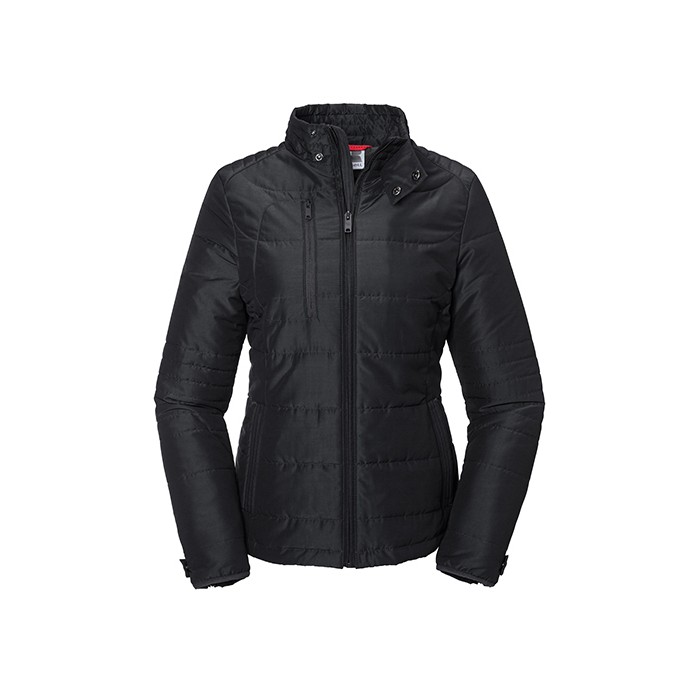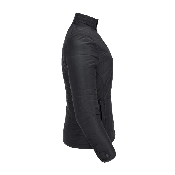 Contemporary shaped fit | High performance DWR fabric treated with Aquapel by Nanotex® | Fluorine and PFC free | Sustainable padding by Dupont™ Sorona® | Stand up collar with 2 snap fastener and inner storm flap to ward off wind and draught | Reversed zips at centre front, chest pocket, side pockets and sleeves | Inner zipped pocket | Decorative sleeve flap with snap fastener | Discreet decoration access at inner left chest