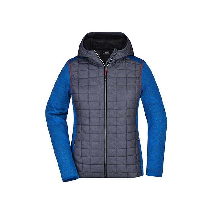 Soft, warm, easy-care fabric in melange look | Front, back and hood in quilted checked design | Contrasting flatlock seams on the sleeves | Hood with internal width adjustment | Full-length, covered zip | 2 side pockets with zip and 2 inside pockets | Shaped fit