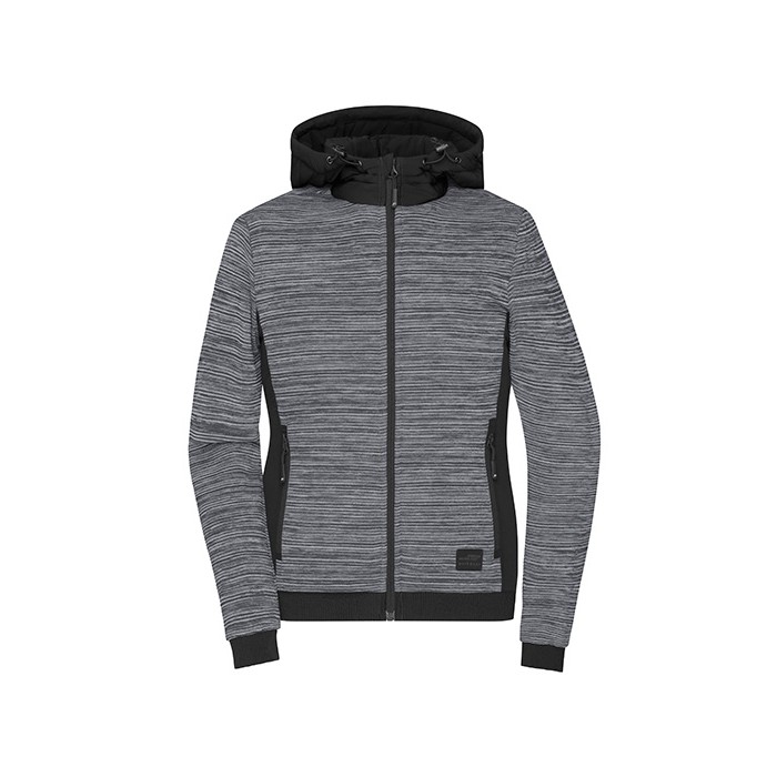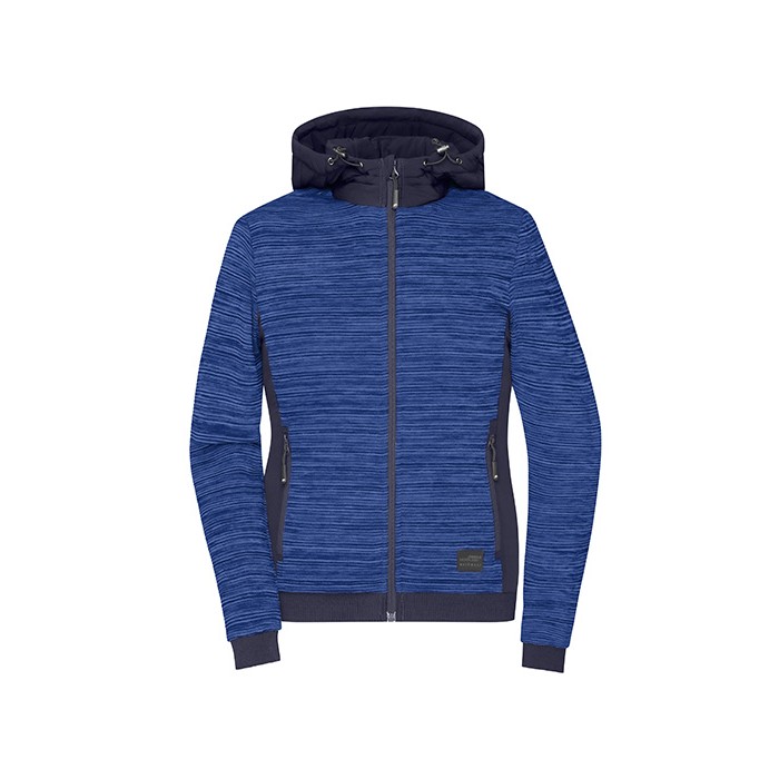 Padded knitted fleece jacket, outer material 300 g/m² | Easy-care combined with elastic inserts | Slightly fitted | Warming DuPont™ Sorona® padding (renewable material) in the front and rear sections and hood | Padding quilted on the inside | Sleeve with elastic lining for optimum freedom of movement | Attached, adjustable hood | Elastic cuffs at hem and sleeves | Front zip with chin protection | Two side pockets with zip, one inner pocket with hook-and-loop fastening | Zip for decoration at the back | Zips: YKK