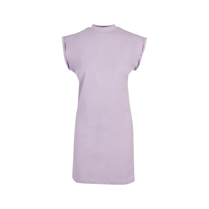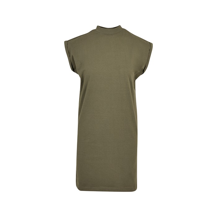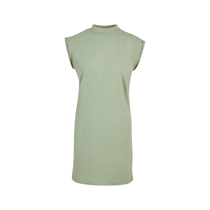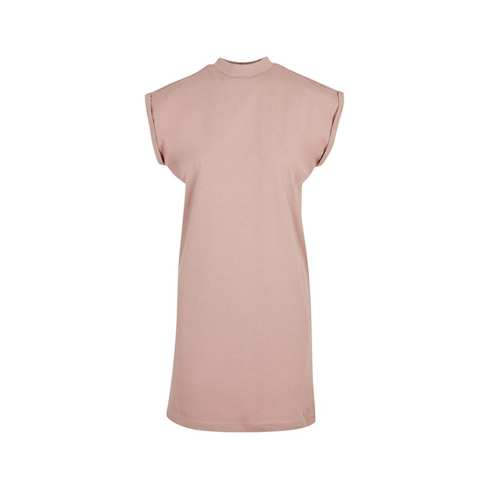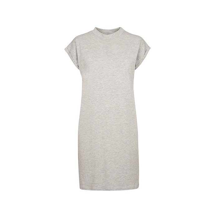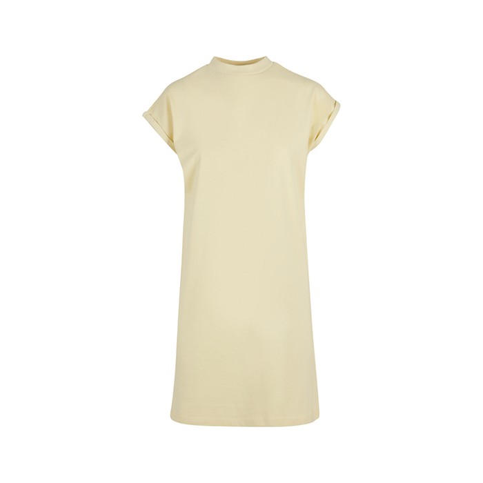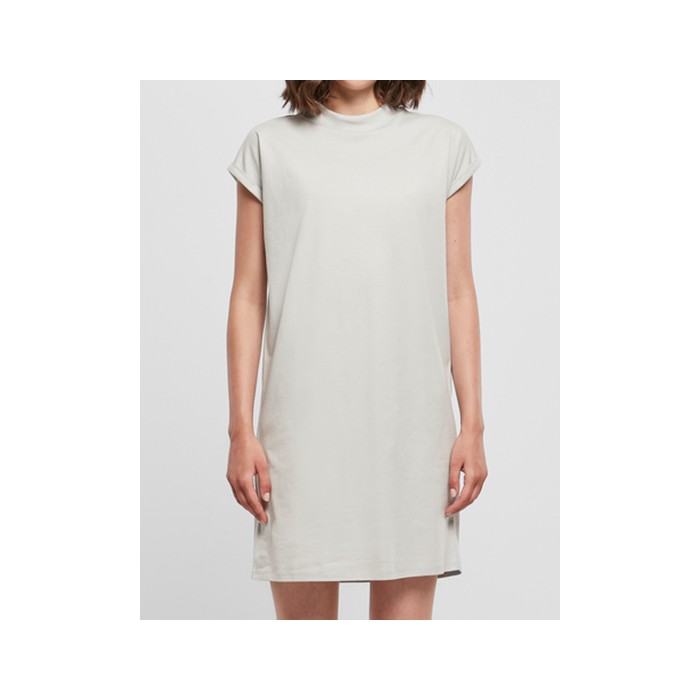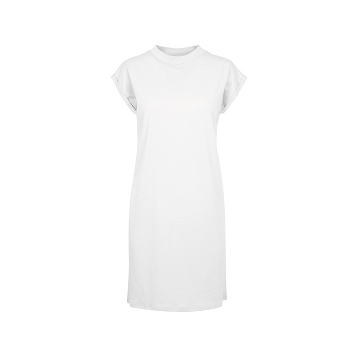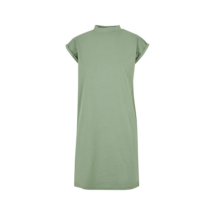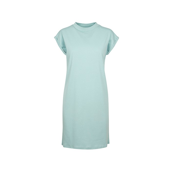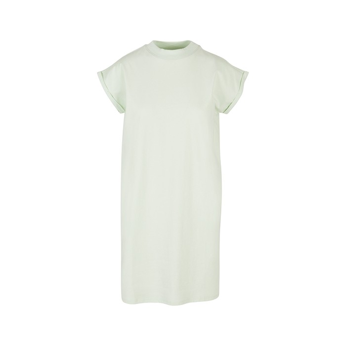 Combination of T-shirt and dress | Cotton fabric | Drop shoulder | Mini stand-up collar | Turn-up sleeves
