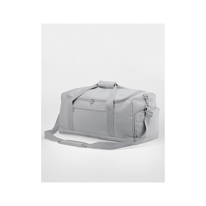 100% Recycled 600D Polyester | PU coated base panel | Two-way zippered opening | Shoe tunnel | Zippered front pocket | External and internal mesh pocket | Padded hand grip | Detachable adjustable shoulder strap | TearAway label | Capacity: 30 litres