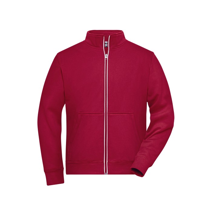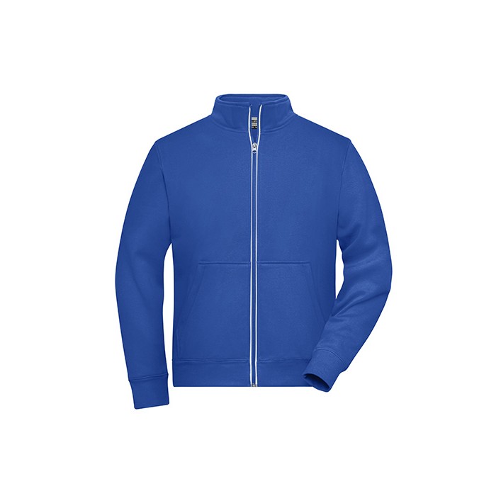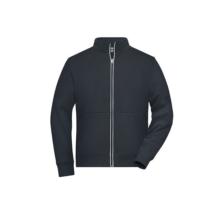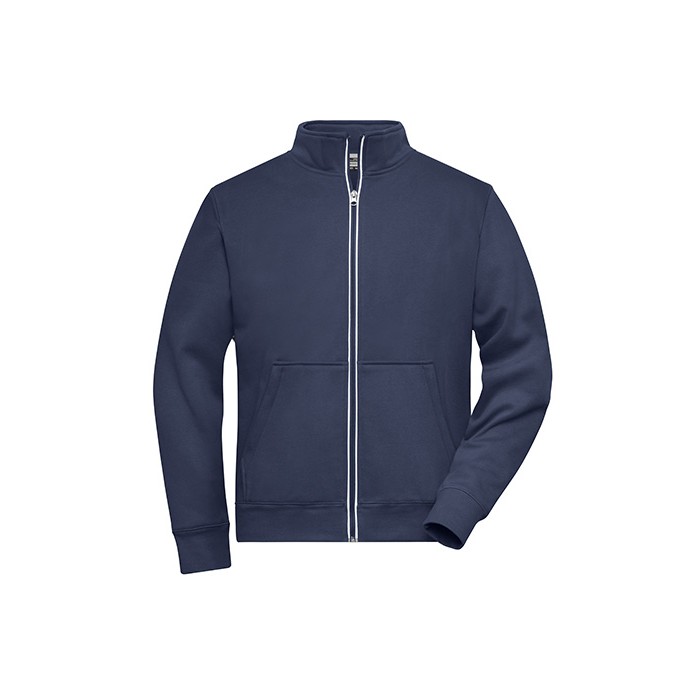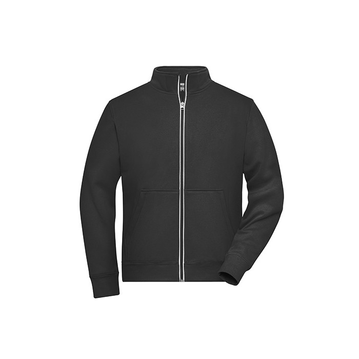 Functional jacket with stand-up collar and kangaroo pocket | Comfortable two-ply material, outside cotton single jersey, inside fleece | Reflecting front zip (without protection function/no PPE) | Kangaroo pocket with concealed zips | Sleeve- and waistbands with elastane | Zips: YKK