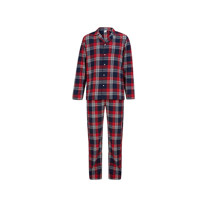 Flannel/ Twill Weave | 2pc set | Lounge shirt with notched collar | Grown-on button fastening, pearlised buttons | Topstitched patch pocket on chest | Lounge pants with plain hem and fully elasticated waist | Twin needle hem and self fabric cuffs | Tear-out label