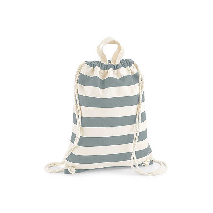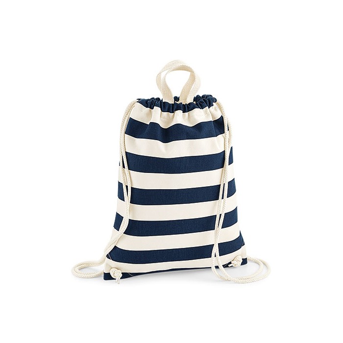100% Brushed Cotton Canvas | Printed stripe design | Dual-purpose grab handle/ hanging loops | Heavy rope drawcord closure | Delivery without content / decoration | Capacity: 12 litres