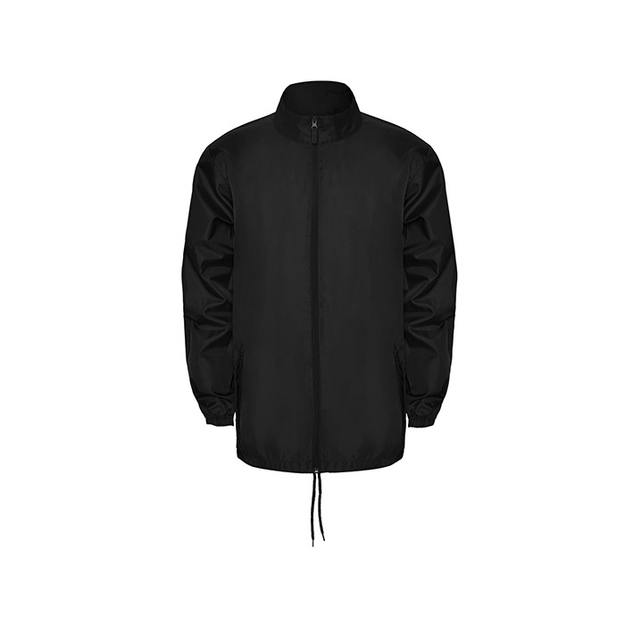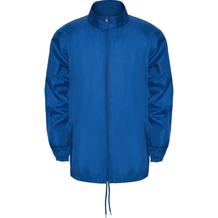 Polyester/taffeta | Rain jacket full zip | Hood folded in collar with drawcords | Two pockets with zip and flap | Elastic cuff | Hem with adjustable drawcords and adjusters | Wind-resistant | Water-repellent | Tear-out label