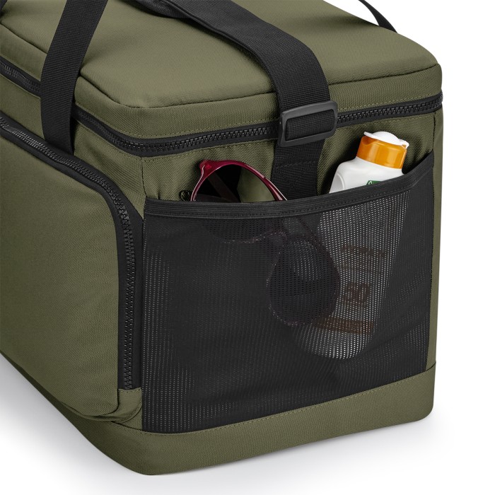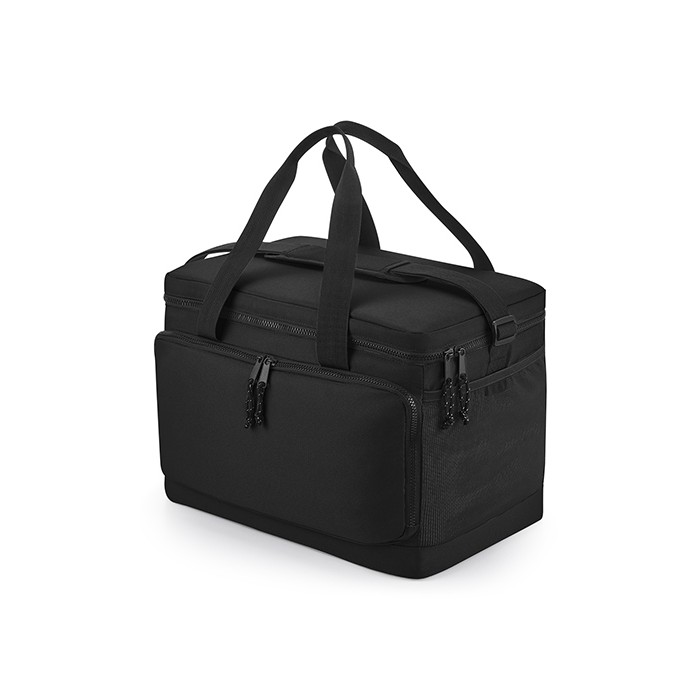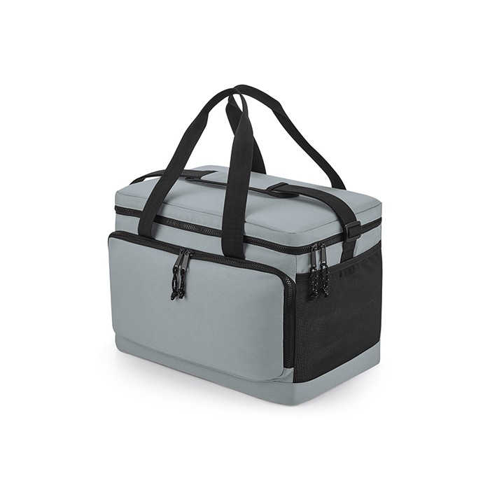 Recycled 600D Polyester | Food safe fully insulated main compartment | Zippered main compartment | Zippered front pocket | Stretch mesh side pocket | Wipe clean interior | Internal water bottle/ice block holders | Twin carry handles | Cord zip pullers with reflective detailing | Adjustable webbing shoulder strap | TearAway label for ease of rebranding | PVC free | PEVA lining - BPA free | Delivery without decoration/content | Capacity: 25 litres