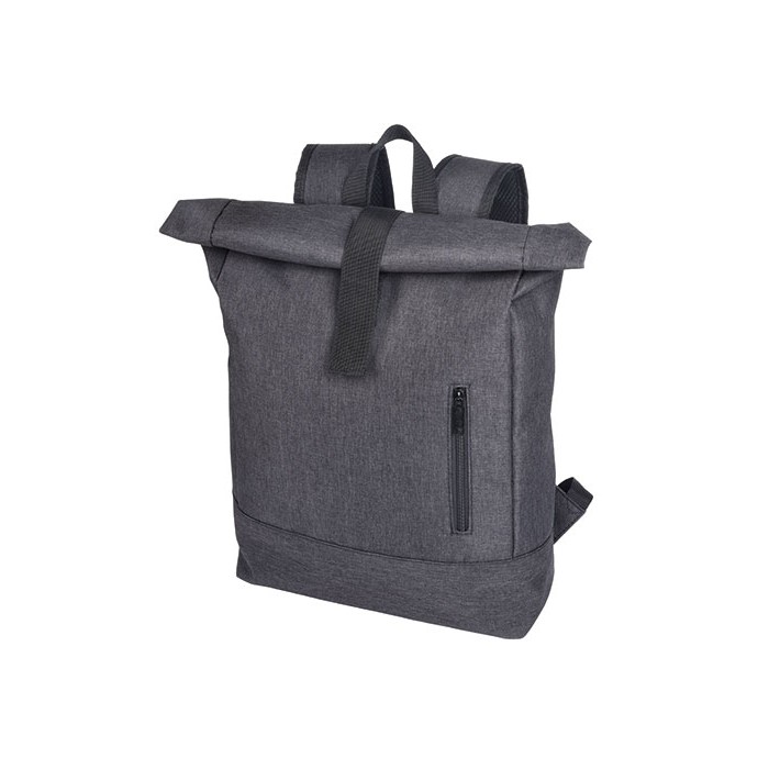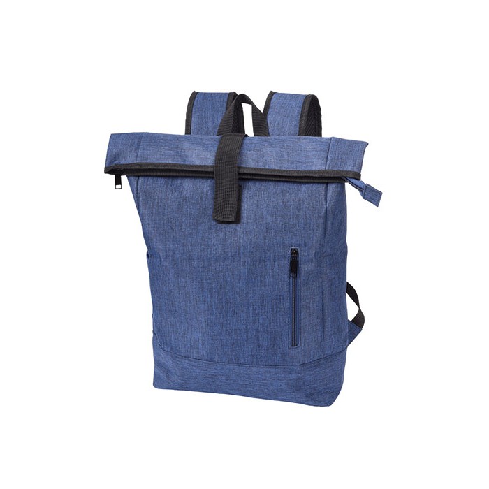 Polyester 300D | Vertical zipped front compartment | Zipped main compartment with padded inner compartment for laptop or tablet | Can be rolled up and secured with hook-and-loop fastening | Padded shoulder straps and back section | Carry loop | Delivery without decoration/content