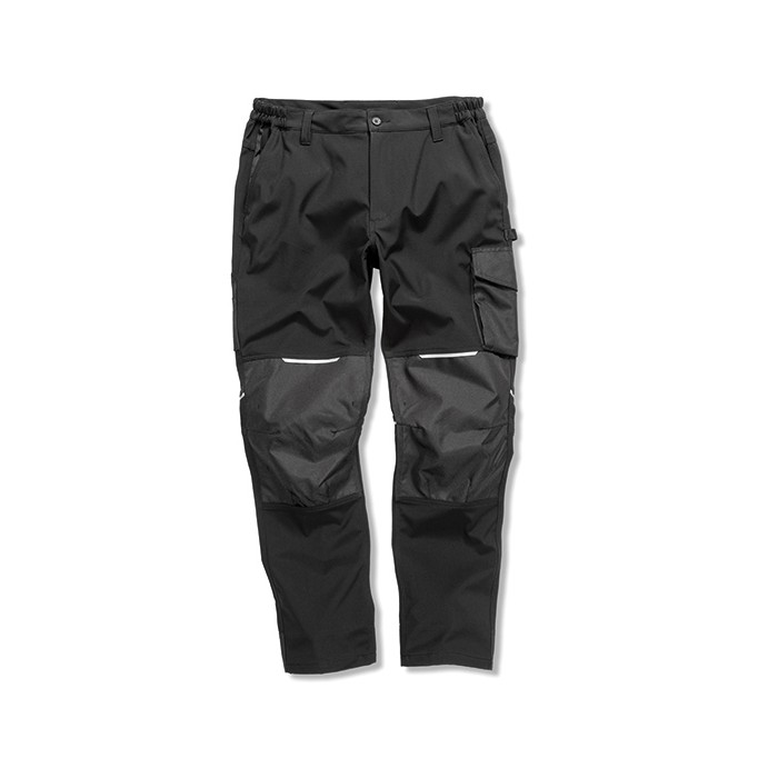 260 g/m², 3 layer bonded mechanical yarn comprising: Outer- layer: 100% Polyester, Mid-layer: waterproof 8000mm, breathable 3000g & windproof TPU membrane, Inner-layer: 100% Polyester, Knee panels: PU coated Oxford Polyester | Multi use cargo thigh pocket with zip side | Toughened, articulated knee panels | Rubber tear release pocket trim | Critical stress point bar tacking | YKK zip with button fastening | Toughened ankle scuff panel | Triple needle stitched seams | Hand warmer side pockets | Expandable waistband | Reflective detailing | Rear pockets | Hammer loop | Rule pocket | Belt loops | Durable & hardwearing finish | Expansion waistband for adjustable fit & draught protection | Decoration Type: Embroidery