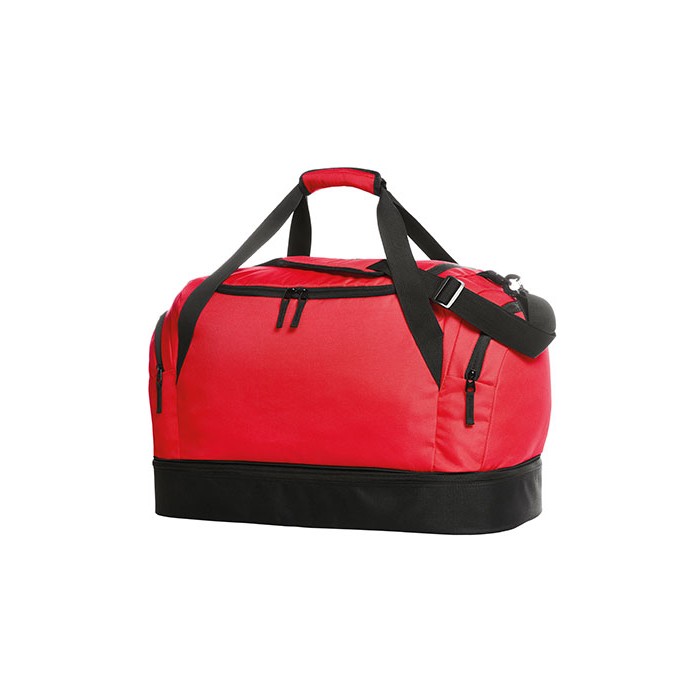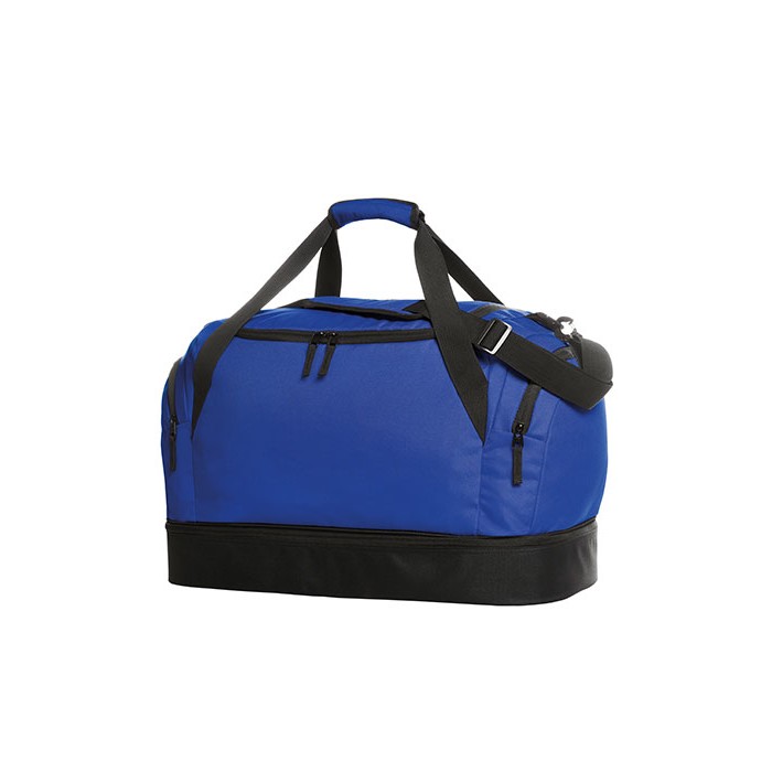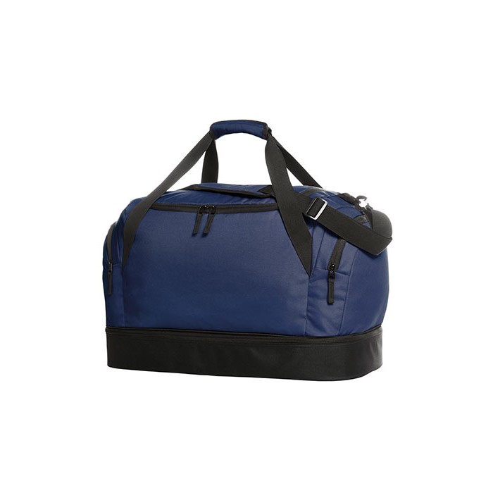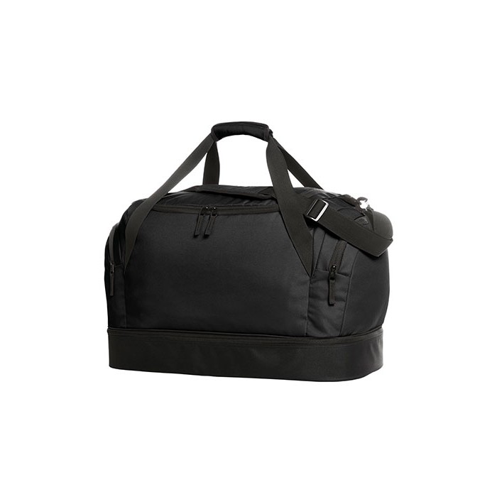 Classic sports and leisure bag with sturdy bottom tray that can be filled separately | Large main compartment with 2-way zip | Firm bottom with base feet | Zipped inside pocket | Two side pockets with zips | Carrying handles with handle cuff | Removable, length adjustable shoulder strap with shoulder pad | Delivery without decoration/content | Capacity: approx. 48 litres