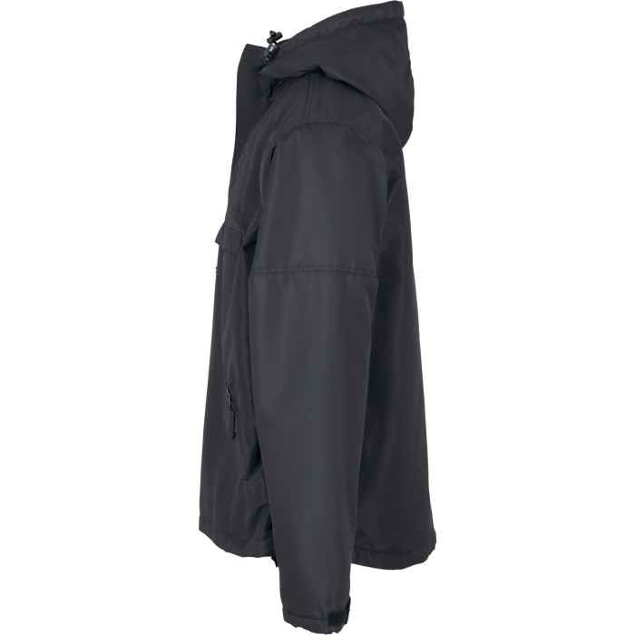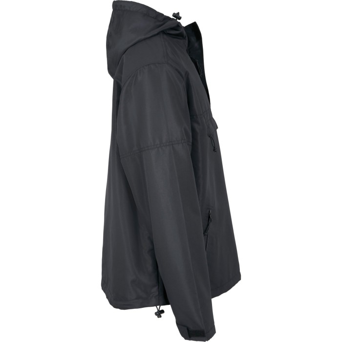 Wind- and water-repellent | Mesh lining inside | Adjustment options on hood and waistband with drawstring | Side ventilation | Cuffed sleeves | Horizontally recessed, concealed giant zip pocket | 2 vertical side pockets