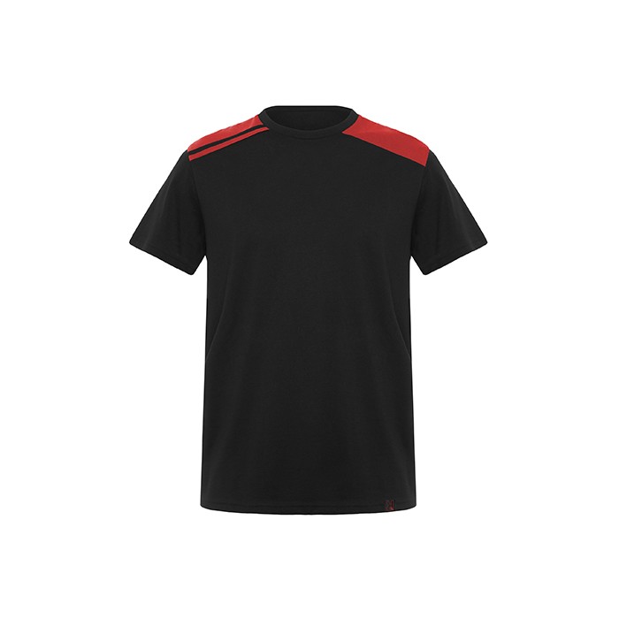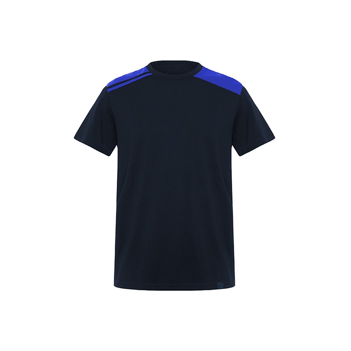Single jersey | Round neck with contrasting inner concealed seam | Side seams | Contrasting shoulders and details