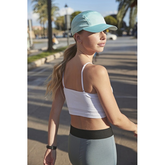 75D Polyester | Lightweight, quick-drying performance fabric | Moisture wicking, ultra soft sweatband provides all-day comfort | Laser cut ventilation for enhanced breathability | Stretch-webbing adjuster with low profile clip closure | TearAway label