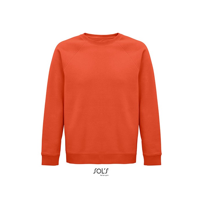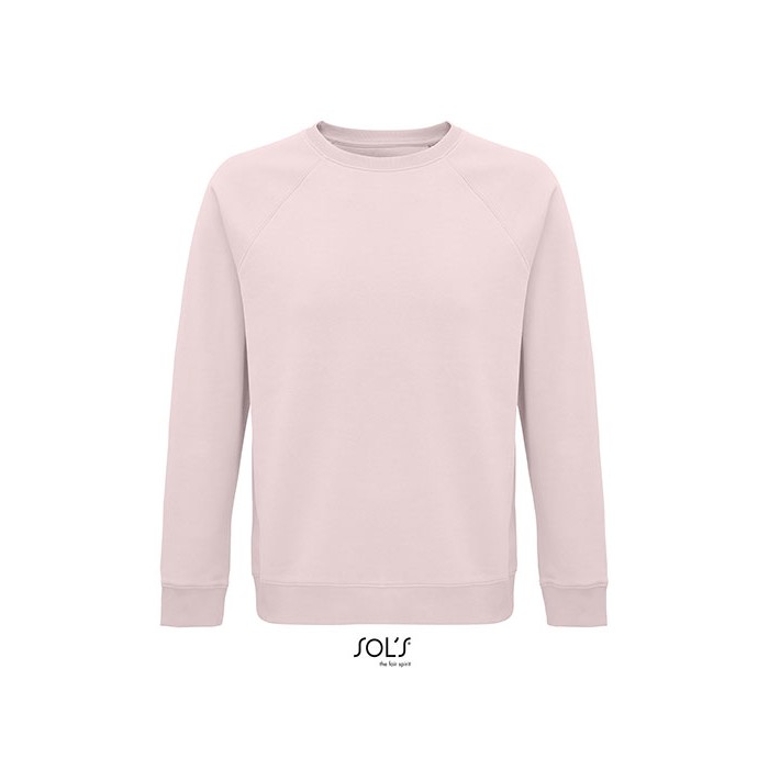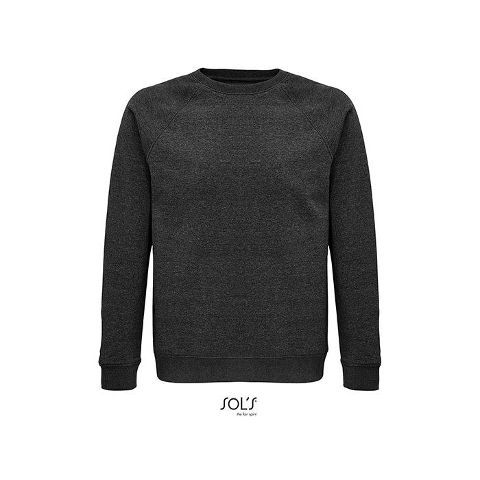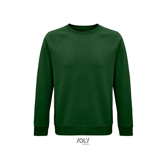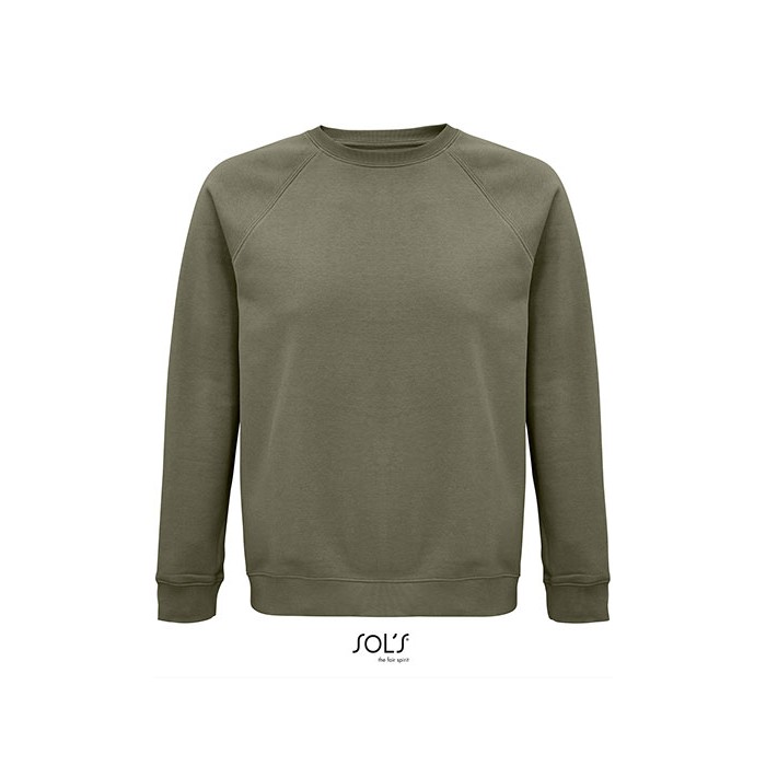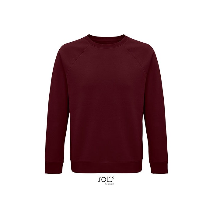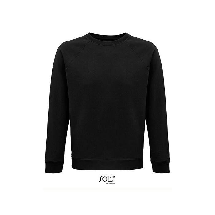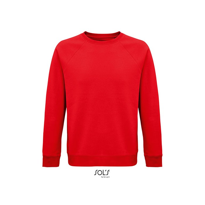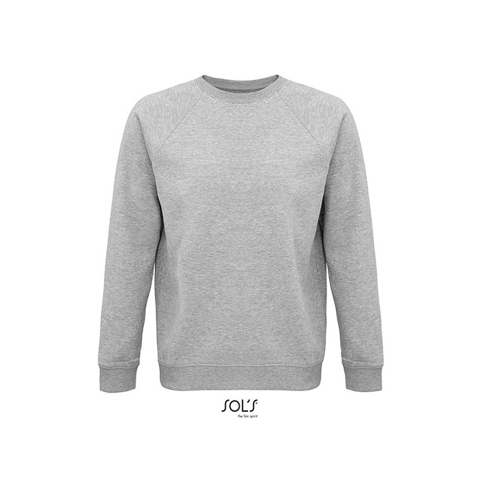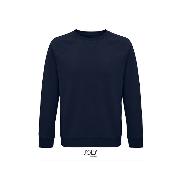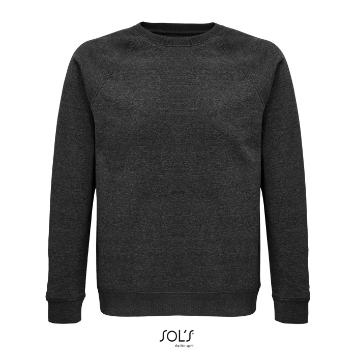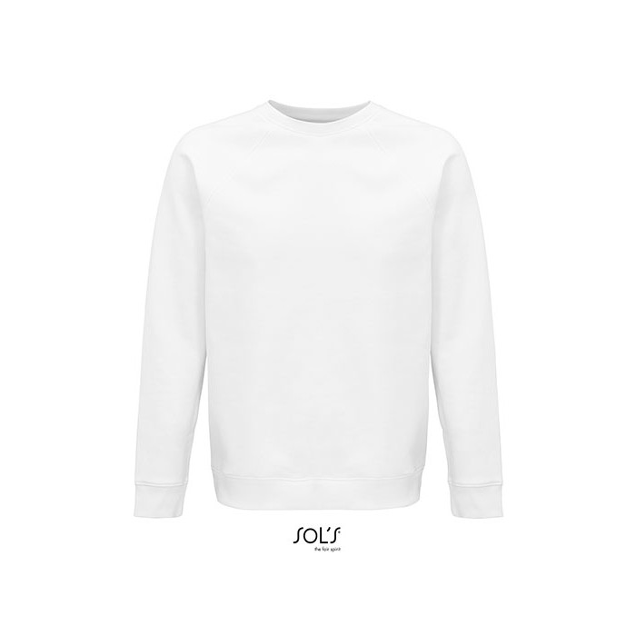 Fleece 280 | 80% organic cotton / 20% recycled polyester | 3 threads | Brushed inside | Outside: 100% cotton, Ribs: 97% organic cotton / 3% elastane | Organic crew neck sweat-shirt | Side seam | Raglan sleeves | ½ moon inside neck | Jersey cleaning tape | 2x2 ribbed cuffs, collar and hem | No label