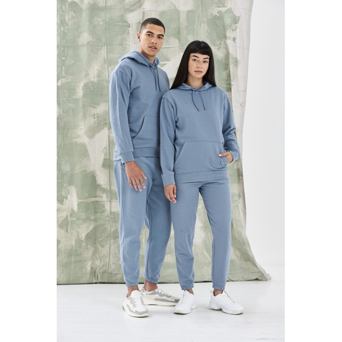 Regenerated Cotton / Recycled Polyester | Brush Back Fleece | Unisex relaxed fit | Set-in sleeves | Dropped shoulders | Droptail hem - curved high front, low back | Ribbed hem cuffs | Single Jersey back neck tape and hood lining | Dyed-to-match drawcords | Kangaroo pocket | Tonal topstitching detail | No brand label | Re-sealable, recyclable bags; made from 100% recycled plastic