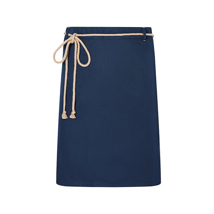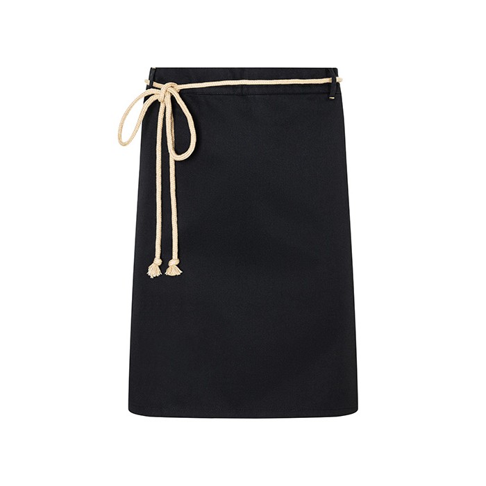 Twill weave, 215 g/m² | Colourfast, easy care, sustainable | Modern and sustainable half apron in natural urban style | The product contains 65% recycled polyester and has been produced in an environmentally friendly and socially responsible manner | With innovative side openings for easy access to your own trouser pockets | Waist ties made of contrasting cord provide a natural look and an excellent fit | Two loops on the upper waistband for additional support when tying | Contrasting seams on loops and pockets complement the natural look | Green Button certified, www.g-k.eu/karlowsky