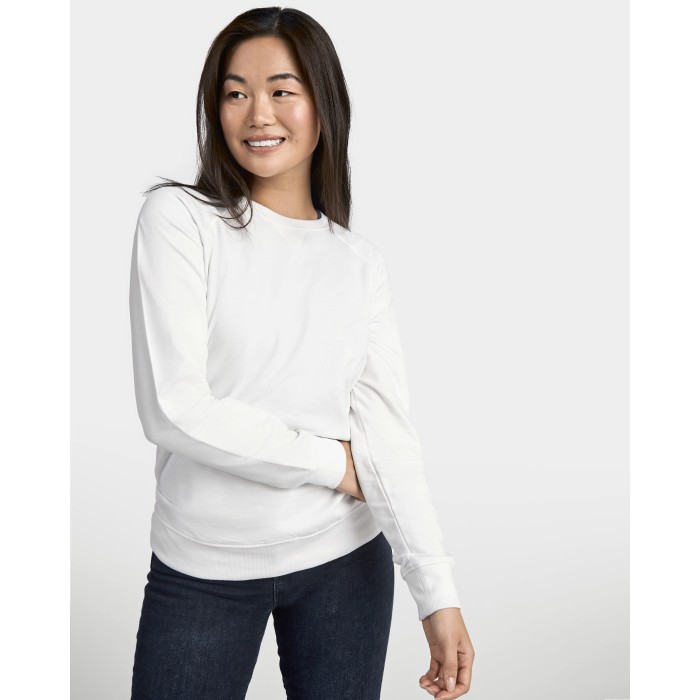 French terry | Slub yarn | Long-sleeve sweatshirt with raglan sleeves | 2x2 rib knit at collar, cuffs and hem | Crew neck with crossed stitching in front | Reinforced tape at neck | Tear-out label | Not brushed inside