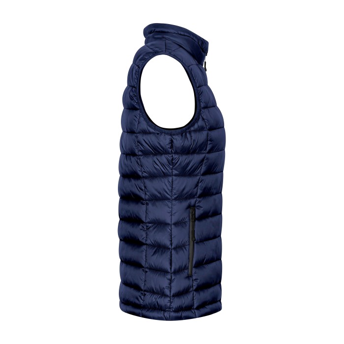 Padded gilet | Stand collar | Chin guard | Waterproof zips | Internal pocket | Full length zip | 2 zipped side pockets | Tunnel drawstring at hem with cord stoppers inside | Invisible zip for finish | Neutral size label | Outer/inner material 100% nylon, padding 100% polyester