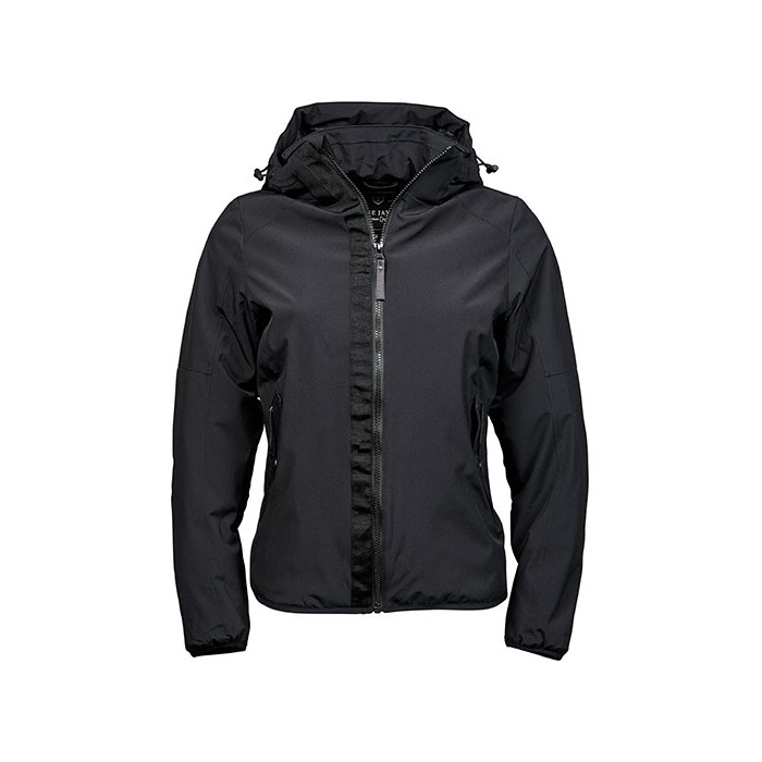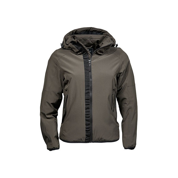 Premium outdoor jacket | Two layered performance material with water repellent skills | Insulated with high quality DuPont™ padding | Black dull trim contrast | Double pocket opening with a discreet zip puller | Flap with black metal snap buttons | Chin protection | Detachable hood with draw string regulation | Two front pockets with double opening | Elastic hem and cuff | Inner pocket with snap button