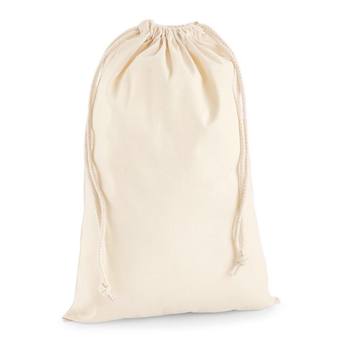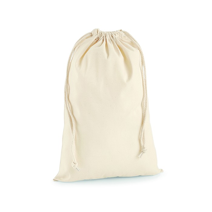 Premium cotton for enhanced durability | Superior print surface for optimal decoration | Double draw cord closure | Capacity: XS approx. 1 litre, S approx. 3 litres, M approx. 8 litres, L approx. 15 litres, XL approx. 38 litres | Delivery without content / decoration