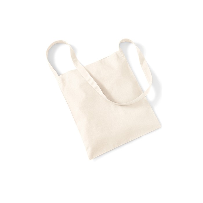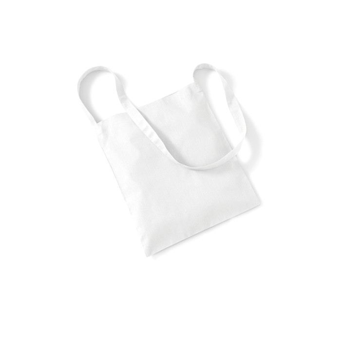 100% Cotton - 140gsm (4.1oz/yd²) | Self fabric shoulder strap | Capacity: 8 litres | Article weight approx: 60 g | Length of handle approx. 118 cm | Delivery without content / decoration