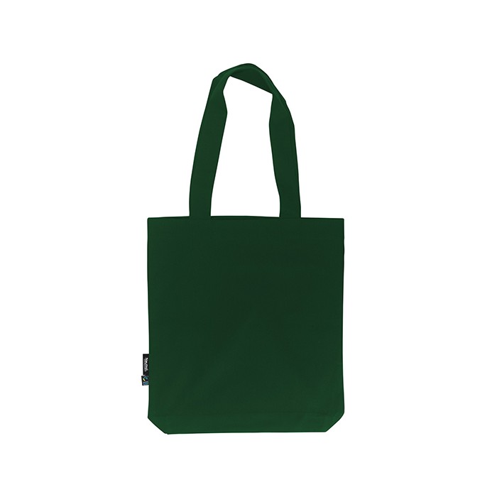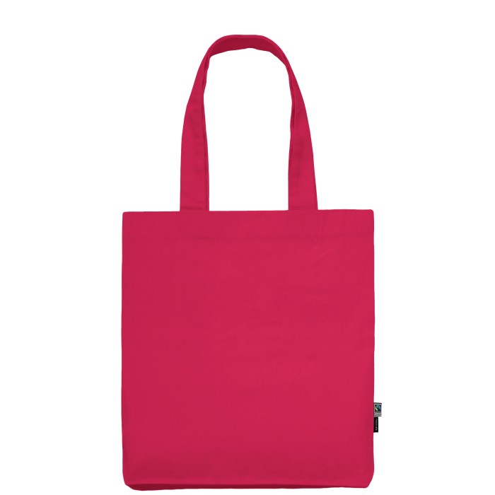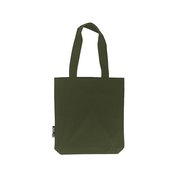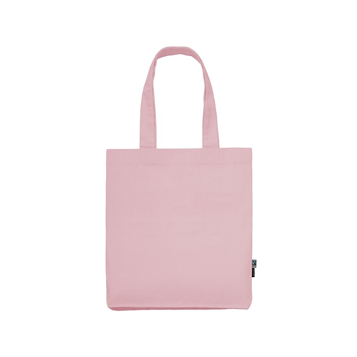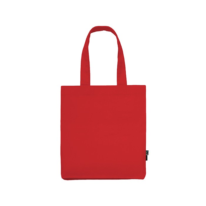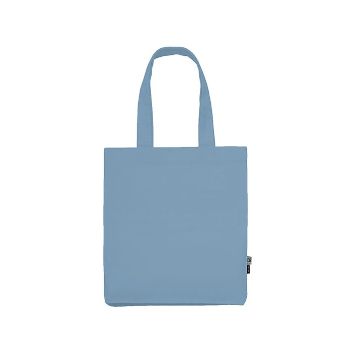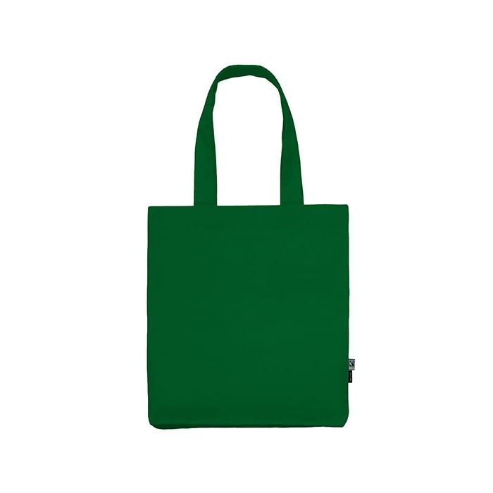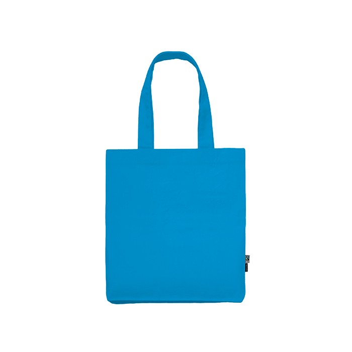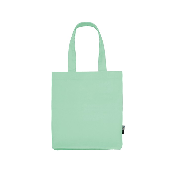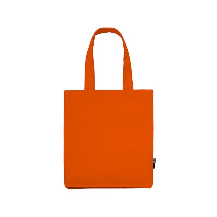 Fairtrade-certified cotton | Combed organic cotton | Twill weave | Long handles | Neutral and Fairtrade flag label at side | Delivery without content / decoration