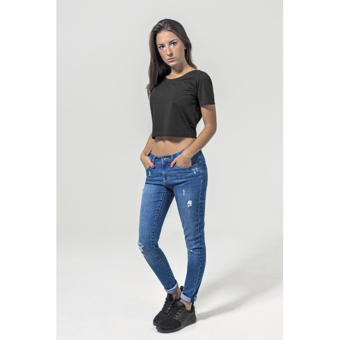 Single jersey | Neutral size label without branding | Neck print possible | Cropped length | Fashion fit