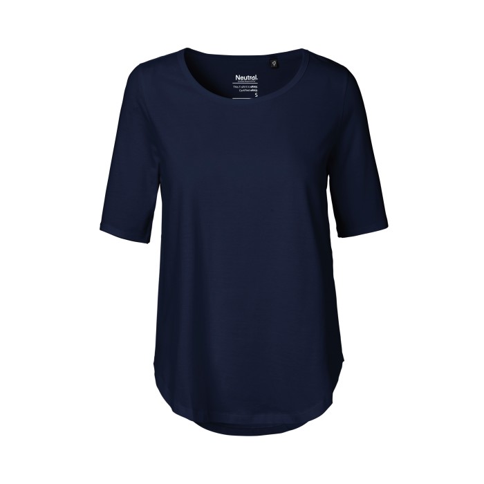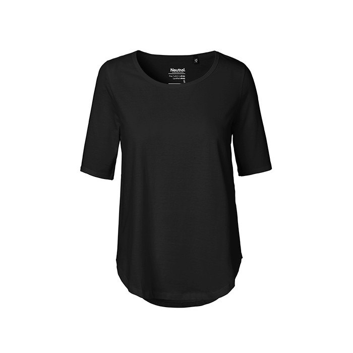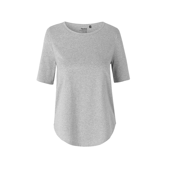 Fairtrade-certified cotton | Certified organic combed cotton | Single jersey knit | Half length sleeves | Elastane rib at neck opening | Neckband tape inside