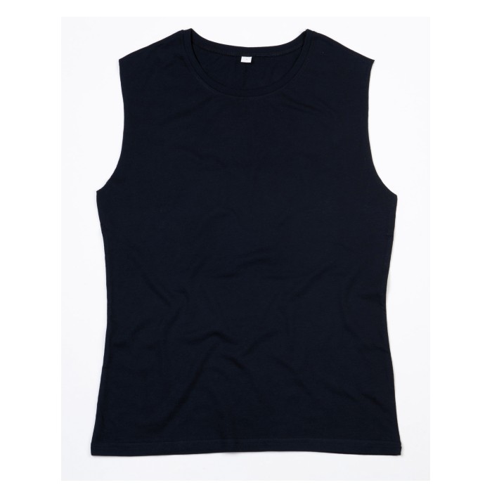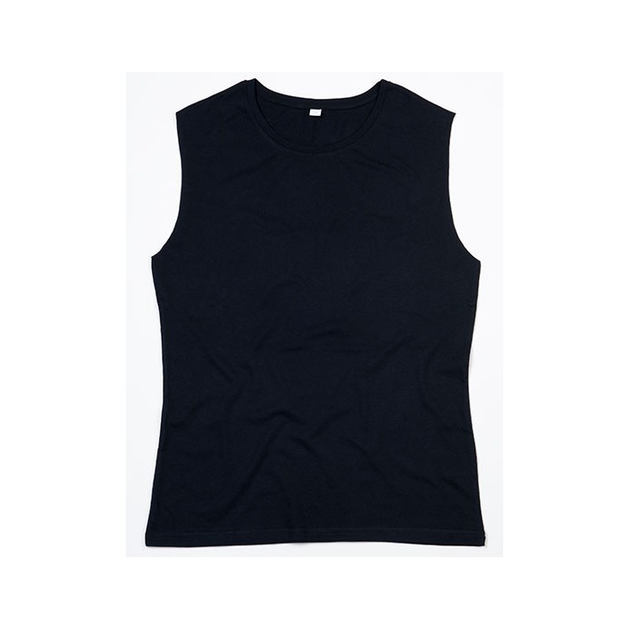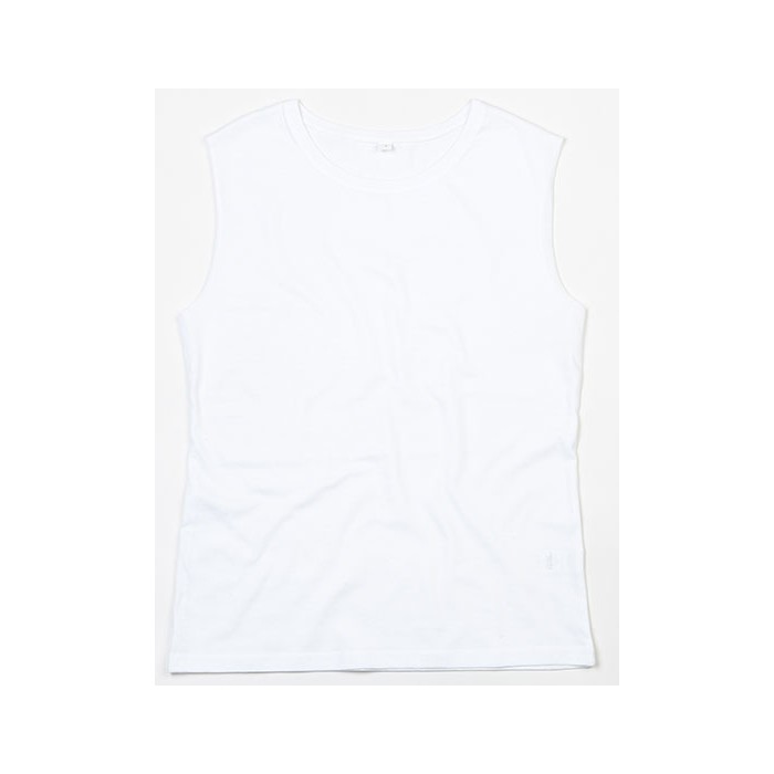Organic or in Conversion to Organic cotton | Single Jersey | Loose fit tank T | Contemporary fit | Longer length | Narrow rib at neck | Raw edges at armhole | Tear-off size label