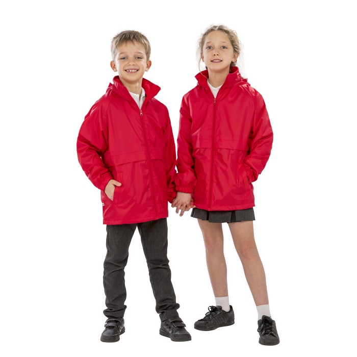 Lekka | Klejone szwy | 5 mm zamek nylonowy | Boczne kieszenie | Zwijany, nieprzemakalny kaptur | Taśma odblaskowa w dolnej części pleców | Elastyczne ściągacze | Wodoodporna (2000 mm) | Poliester StormDri 210T z powłoką poliuretanową