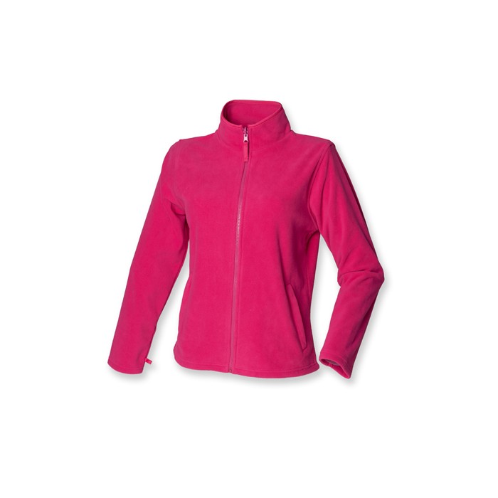 Niemechacący się mikropolar | Damski krój z wyprofilowanymi szwami bocznymi | Kieszenie z przodu na zamek | Lamówka na wykończeniu dekoltu | Zaokrąglony dół koszulki | Podwójne szwy na mankietach i u dołu koszulki
