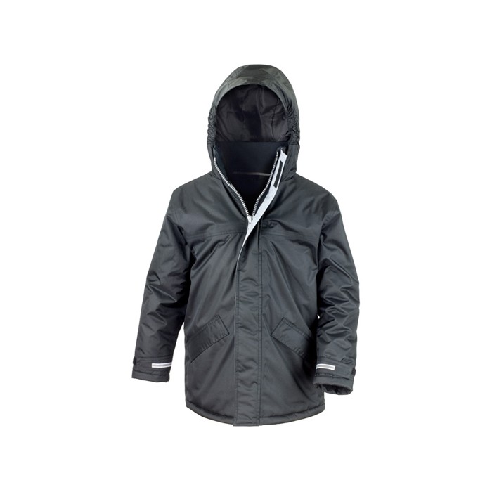 Dół regulowany troczkiem EN14682 | Chowany w kołnierzu, trzypanelowy kaptur z regulacją | Produkt wodoodporny (2000 mm), wiatroszczelny, szybkoschnący | 2 ukryte przednie kieszenie z klapami sztormowymi | Wszystkie szwy klejone | Wytrzymały zamek błyskawiczny 7 mm | Podszewka polarowa w kieszeniach | Elastyczne mankiety z odblaskiem | Materiał wierzchni: 100% poliester Pongee powlekany Storm-Dri. Podszewka: poliester. Wypełnienie 160 g / m² poliester | Podszewka (szara): poliester | Dłuższy fason | Elementy odblaskowe na rękawach i z tyłu, na dole kurtki
