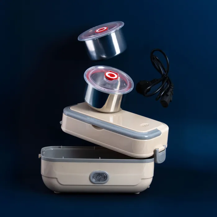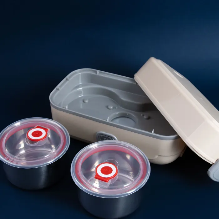 Niezależność od mikrofali: Największą zaletą jest wbudowany system grzewczy. Pozwala on na podgrzanie posiłku w dowolnym miejscu z dostępem do prądu, co eliminuje konieczność korzystania ze wspólnych, często brudnych kuchenek mikrofalowych w biurach.