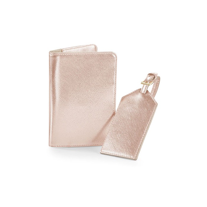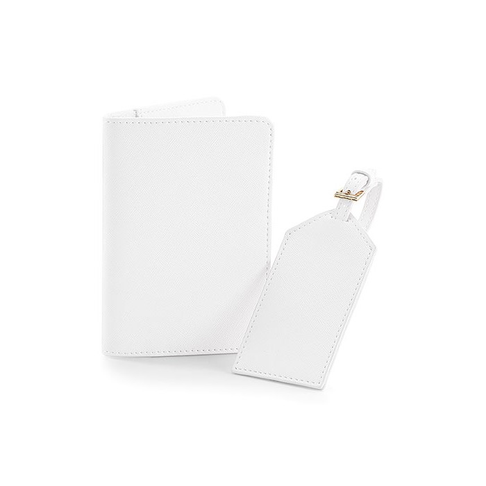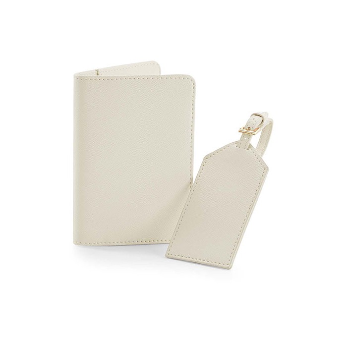 100% PU o wyglądzie skóry | Odrywana metka pozwalająca na łatwe oznakowanie marką | Saffiano fine grain | Miękka wyściółka | Połyskliwe złote wykończenia | Zestaw dwuczęściowy | Dostawa bez zawartości/dekoracji | Okładka na paszport: 10, 5 x 14,5 cm, metka: 6 x 11,5 cm