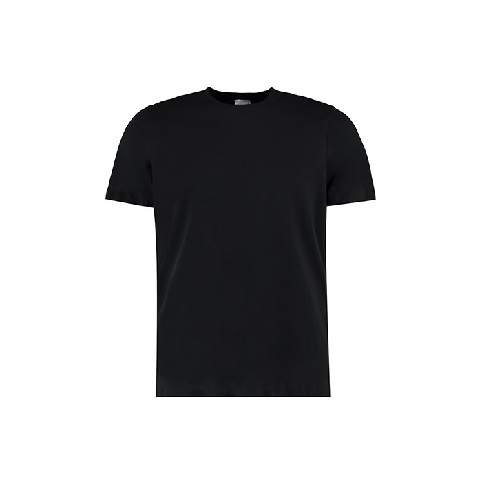 Dekolt wykończony dzianiną prążkowaną 1X1 | Taśma wzmacniająca na karku i ramionach z tego samego materiału | Stębnowany wierzchem detal z przodu dekoltu | Podwójne szwy na mankietach i u dołu koszulki | Odrywana metka Kustom Kit® na karku