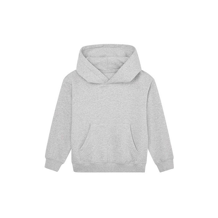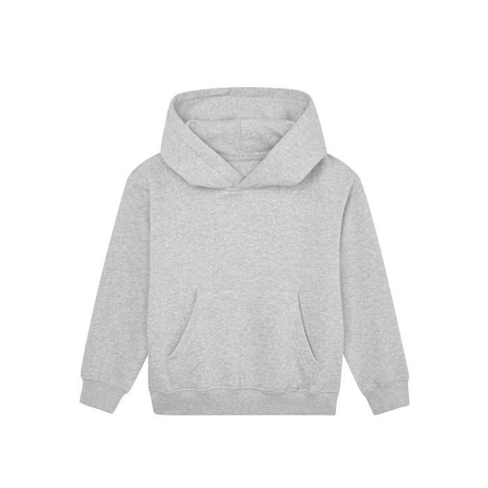Bawełna organiczna lub w konwersji na organiczną, czesana typu ring-spun / poliester pochodzący z recyklingu (rPET) | Szczotkowany polar | Unisex | Rękawy wszywane | Dwuwarstwowy kaptur | Taśma wzmacniająca na karku o splocie jodełkowym i w jednolitym kolorze | Wszyty karczek | Prążkowane ściągacze rękawów i dołu | Kieszeń kangurka | Metka odrywana | Instrukcje dot. prania z kodem QR do sprawdzenia łańcucha dostaw i informacji o pozytywnym wpływie wybierania produktów organicznych | Metka dot. pielęgnacji z organicznej bawełny