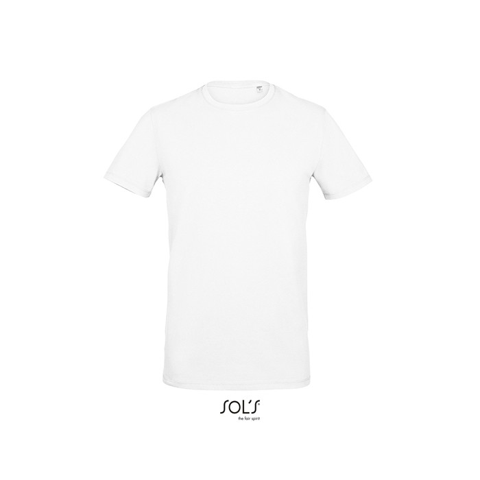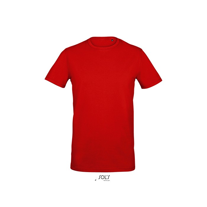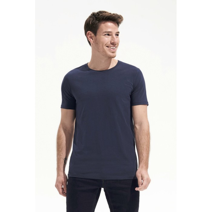 Jersey 190. 95% półczesana bawełna ring spun, 5% elastan | Taśma wzmacniająca na karku | Prążkowany, elastyczny dekolt | Okrągły dekolt | Szwy boczne | Elastyczna | Brak metki