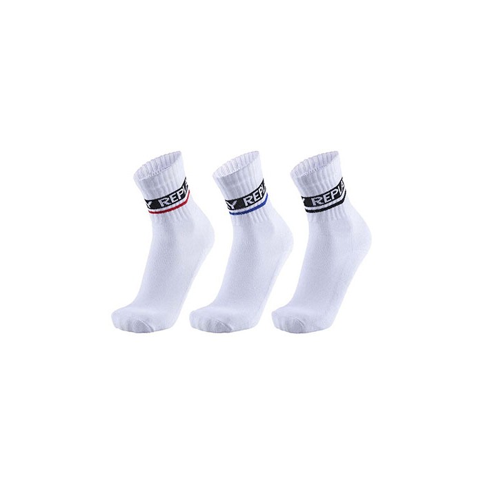 Biała skarpeta, logo marki w jednym kolorze z paskami w różnych kolorach | Idealnie dopasowana
