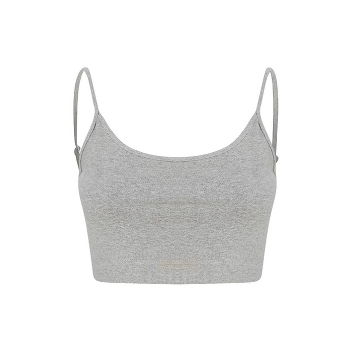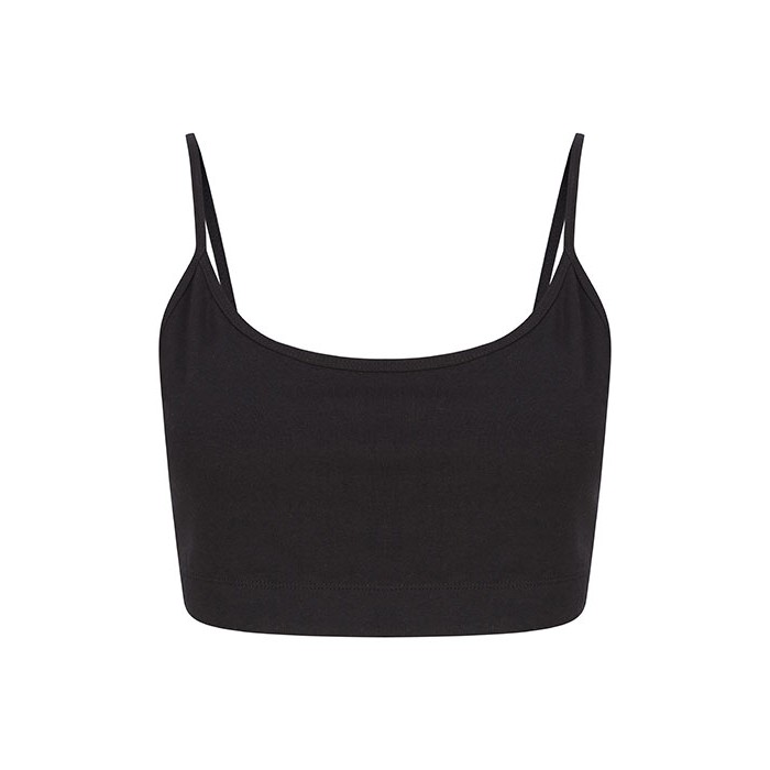 Regenerowana bawełna, poliester z recyklingu | Single jersey | Regulowane cienkie ramiączka | Lamówka na dekolcie i ramiączkach | Podwójna warstwa materiału z przodu | Krótki krój, ukryty elastyczny pas | Brak metki | Torby wielokrotnego użytku nadające się do recyklingu – wykonane w 100% z plastiku pochodzącego z recyklingu
