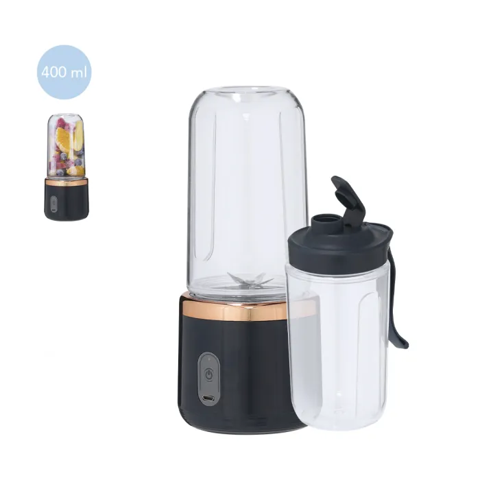 Blender z sześcioma ostrzami ze stali nierdzewnej, w jednolitej obudowie ze szlachetnymi, różowo-złotymi akcentami. W zestawie dwa przezroczyste kubki o pojemności 400 ml z hermetycznym zamknięciem i paskiem ułatwiającym przenoszenie. Wykonany z materiałów wolnych od BPA. Pojemna bateria 1200mAh, ładowanie przez USB (kabel w zestawie).