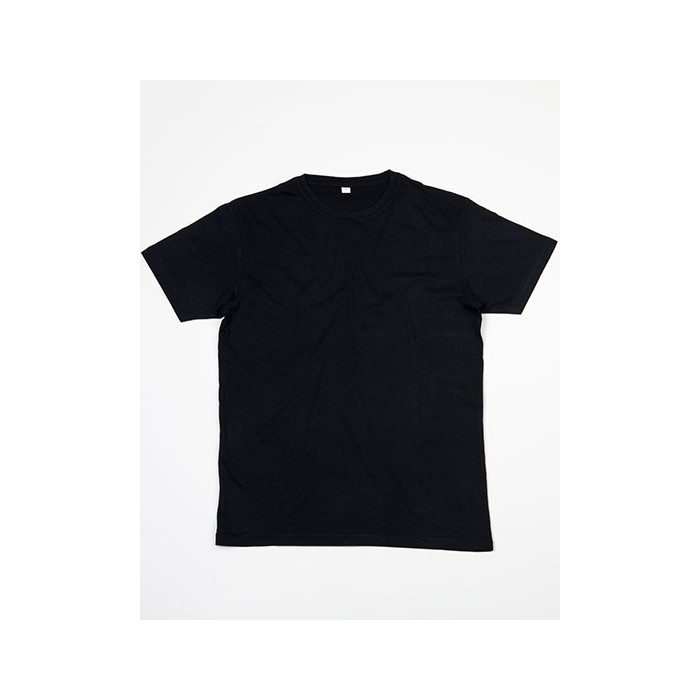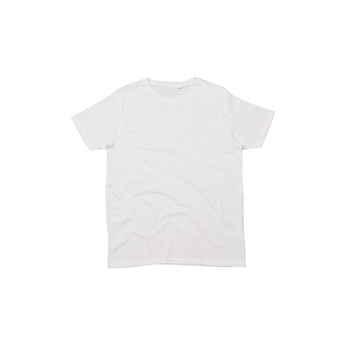 Bawełna czesana ring spun, organiczna lub w konwersji na organiczną | Metka odrywana | Wąskie, prążkowane wykończenie dekoltu | Bardzo miękka w dotyku | Wąski fason | Tkanina z wykończeniem peach finish