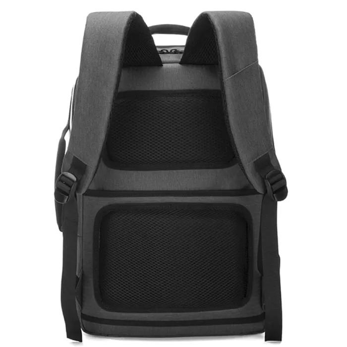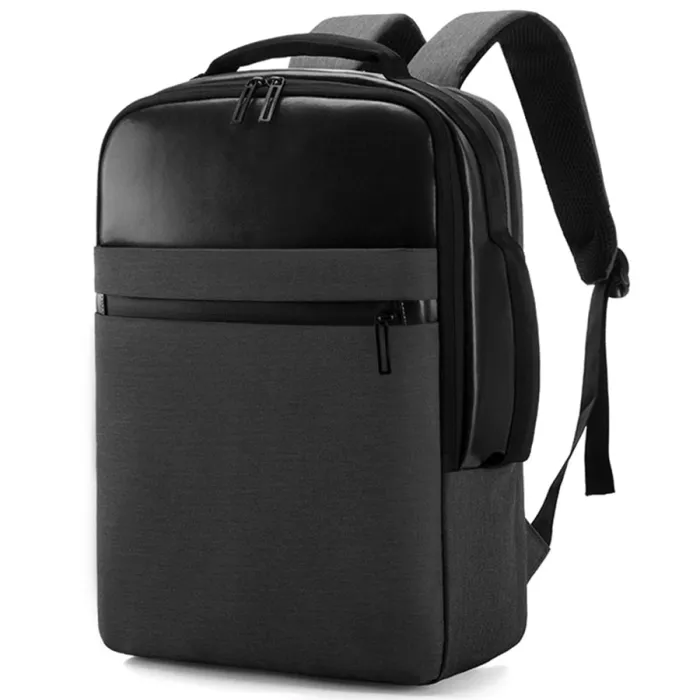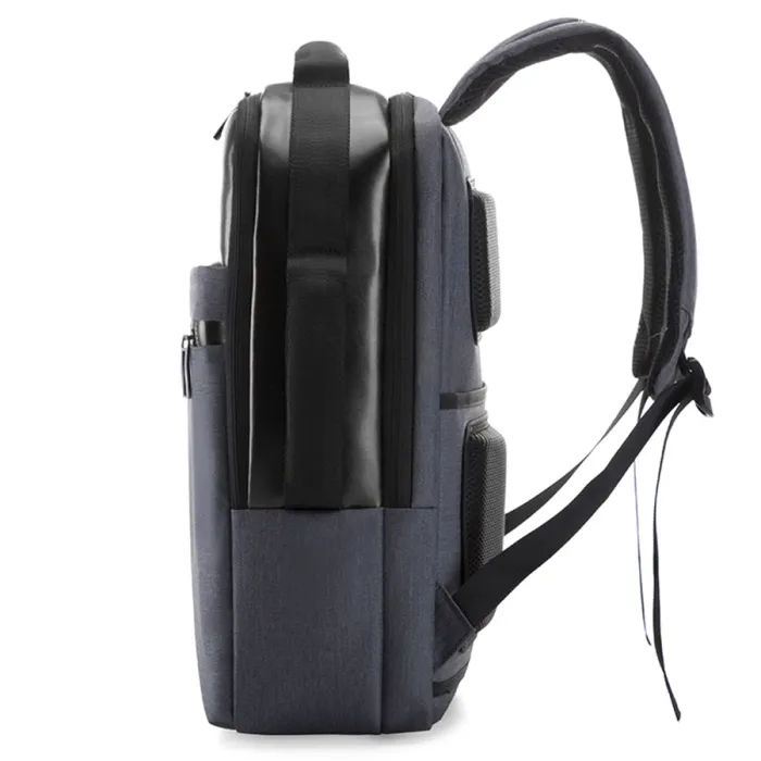 Jego cechy charakterystyczne — połączenie materiałów w dwóch fakturach w tym wielokomorowym plecaku, usztywnionym ze wszystkich stron, a także liczne kieszenie na drobiazgi — czynią ten super-komfortowy plecak idealnym towarzyszem dla miasta i podróży.